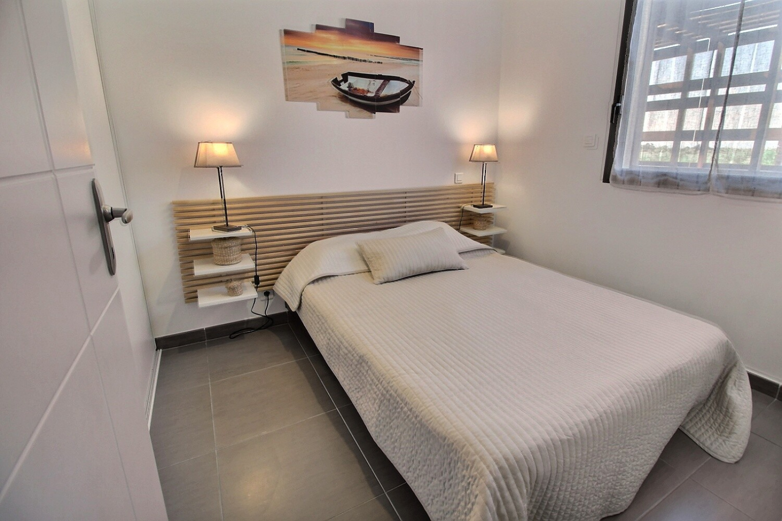 Il se compose d'une entrée, un séjour ( clic-clac, télévision ), une cuisine ouverte équipée ( lave vaisselle, réfrigérateur, plaque de cuisson, micro-onde, four ), une chambre avec un lit en 140 cm et une salle d'eau avec wc.