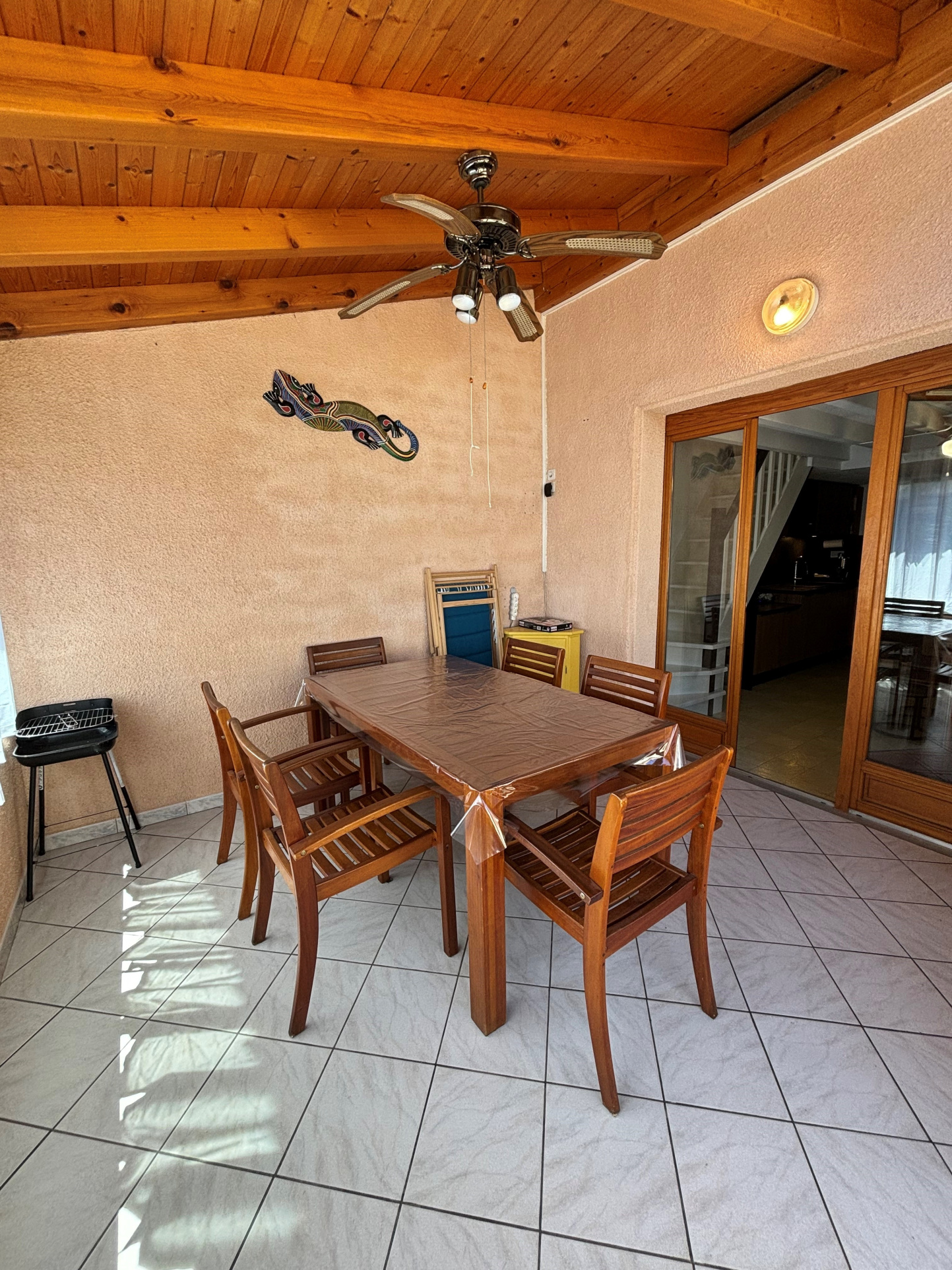 Dans résidence avec piscine, proche plage et commerces, villa climatisée avec terrasse (barbecue), parking privé sécurisé.