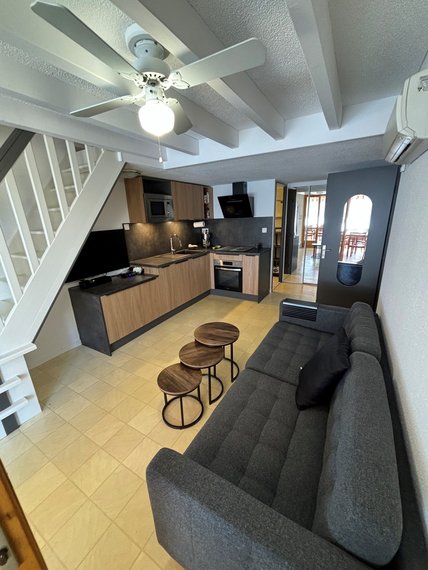 En rez de chaussée vous y trouverez un séjour, une cuisine us équipée , une chambre ( 2 lits 90), salle d'eau, wc ind. et à l'étage, 1 chambre (1 lit 140)