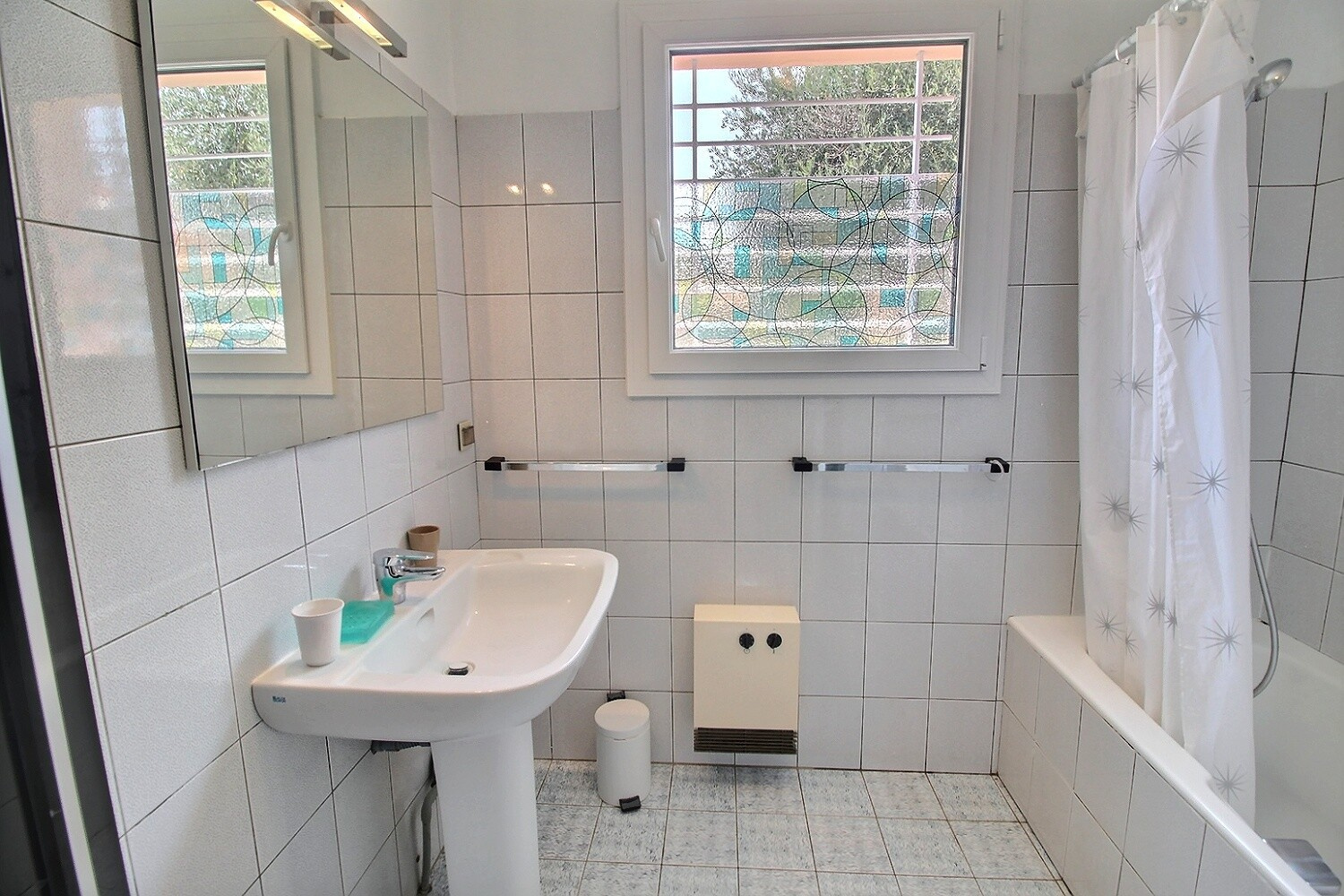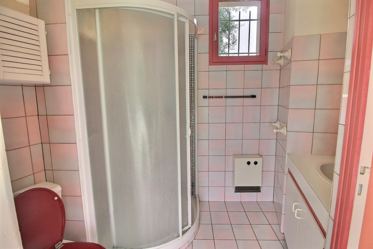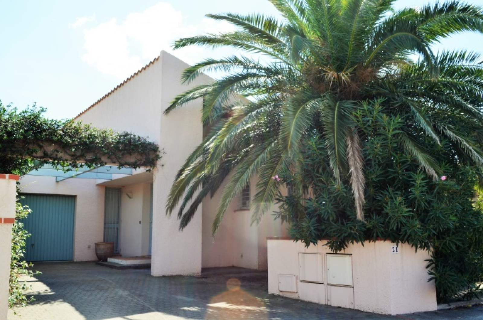 La villa est dotée d'un garage avec une machine à laver.