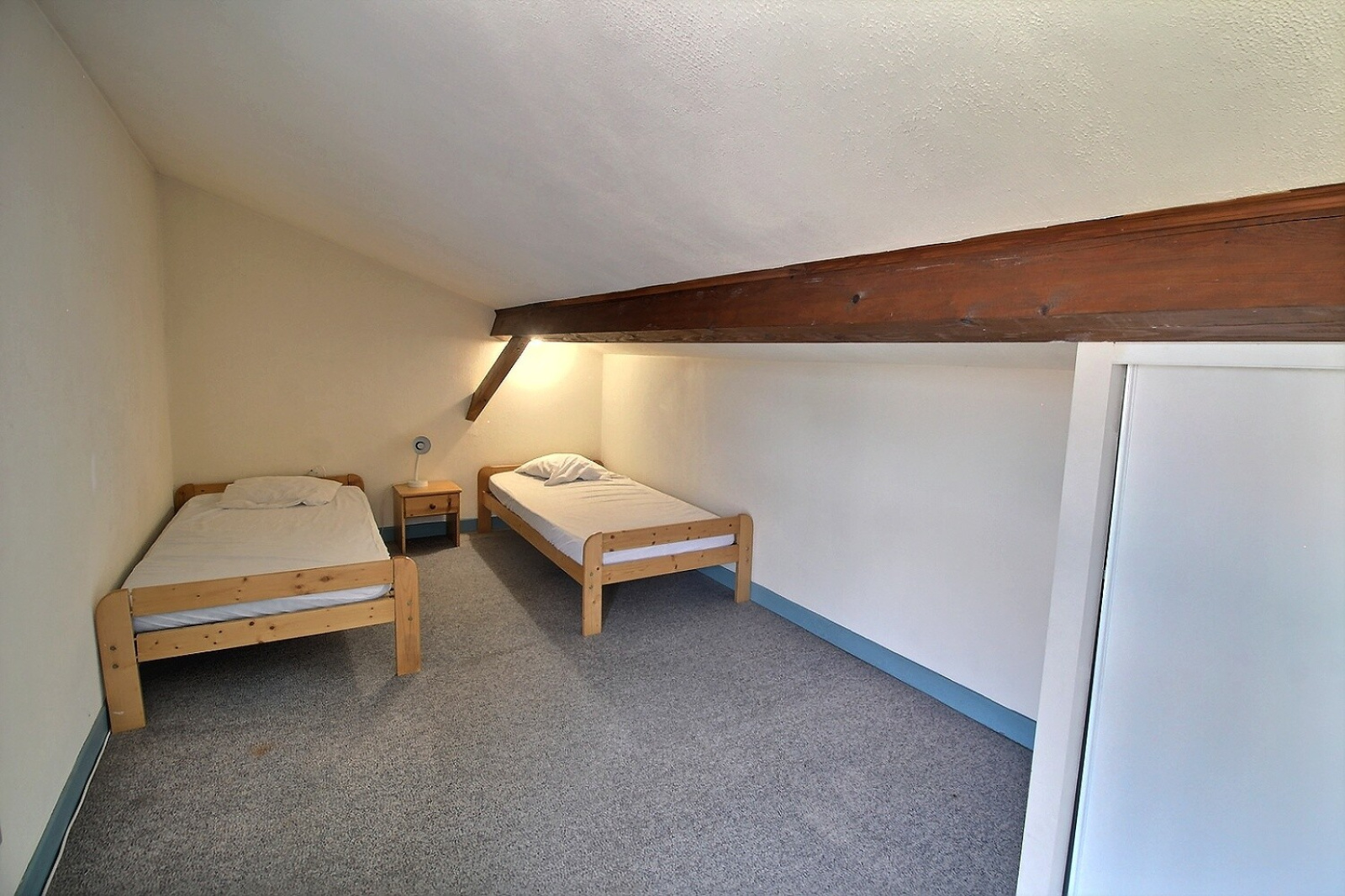 À l'étage, elle dispose d' un coin nuit avec deux lits en 90 cm.