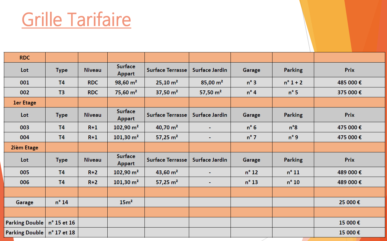 Les appartements bénéficient chacun d’un garage individuel et d’un parking privatif