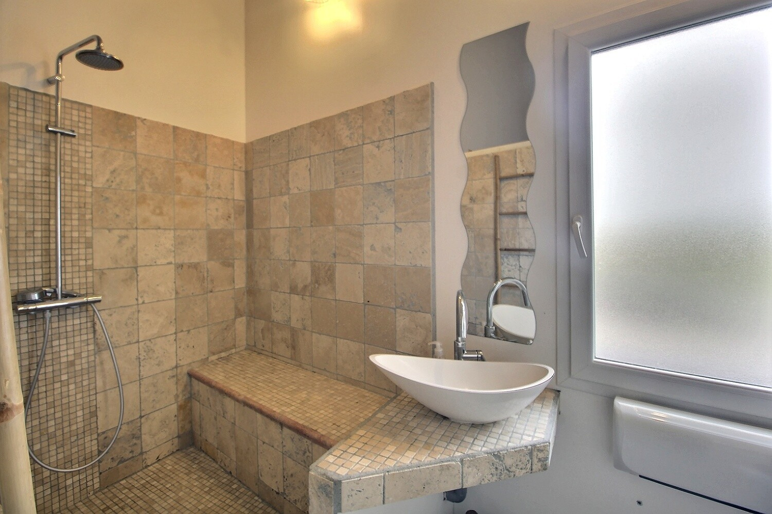 Coté nuit, elle vous propose 1 chambre en rdc avec sde et wc et à l'étage 2 chambres, 1 mezzanine lumineuse et 1 salle de bains avec wc.