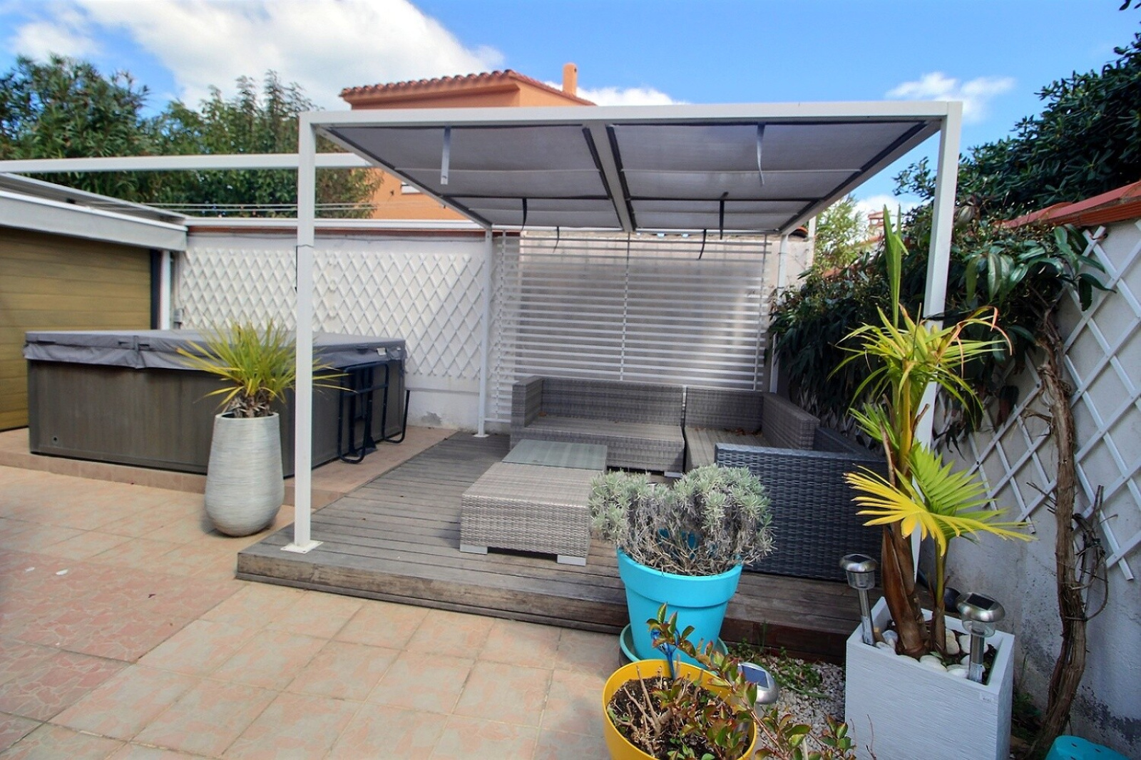Coté prestations, cette maison bénéficie d'un jaccuzzi, de la climatisation, d'un carport, des doubles vitrages et de volets électriques.