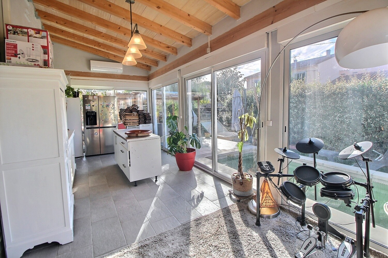 PALAU-DEL-VIDRE - Découvrez cette spacieuse maison de 155,58 m² sur une parcelle de 729 m², située dans un environnement calme et recherché. Elle offre une flexibilité d'utilisation, pouvant être aménagée en 2 appartements distincts. Ses atouts incluent une piscine, la climatisation, des doubles vitrages, un poêle à bois, un abri de jardin, une cuisine d'été, garage et possibilité de garer un camping-car.
