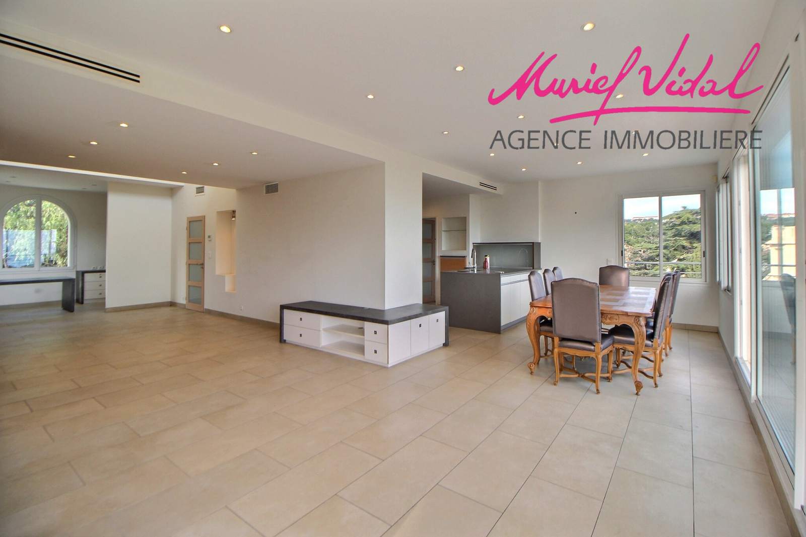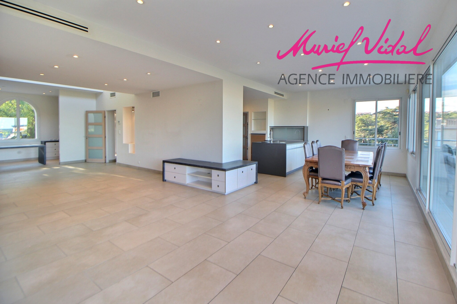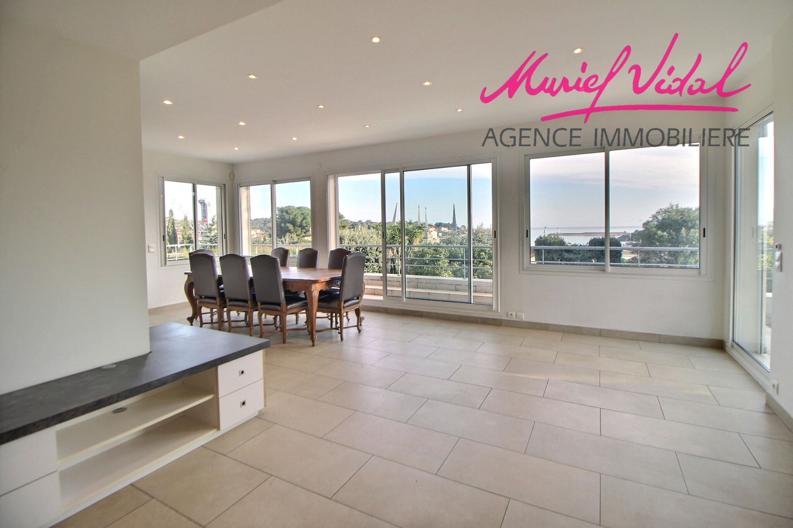 - un vaste séjour traversant, avec cuisine américaine, de 75 m2, ouvert sur une terrasse panoramique mer et port,