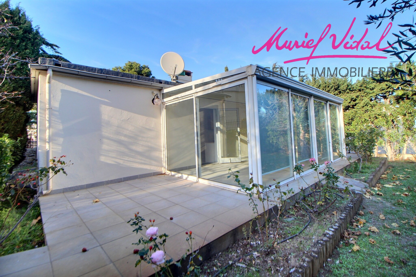 Une maison d’amis/de gardien en plain-pied de 54 m² avec terrasse, pompe à chaleur et entrée indépendante dans le jardin.