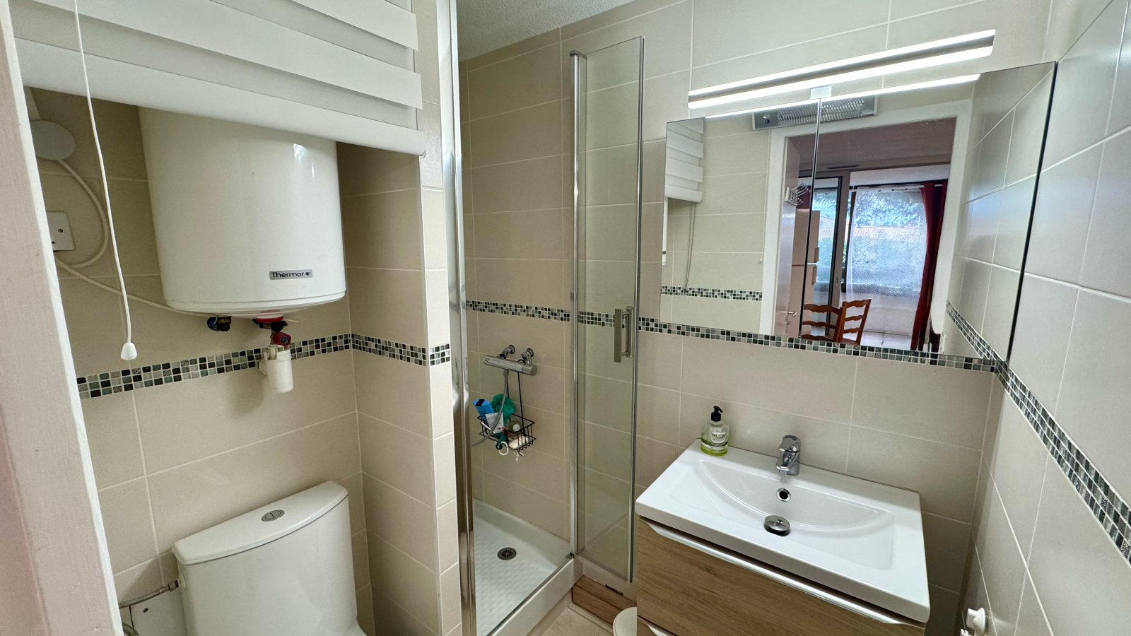 Appartement rénové comprenant, séjour, une cuisine equipée, une chambre, une cabine, une salle d'eau.