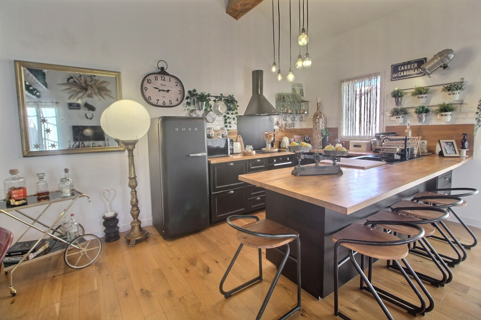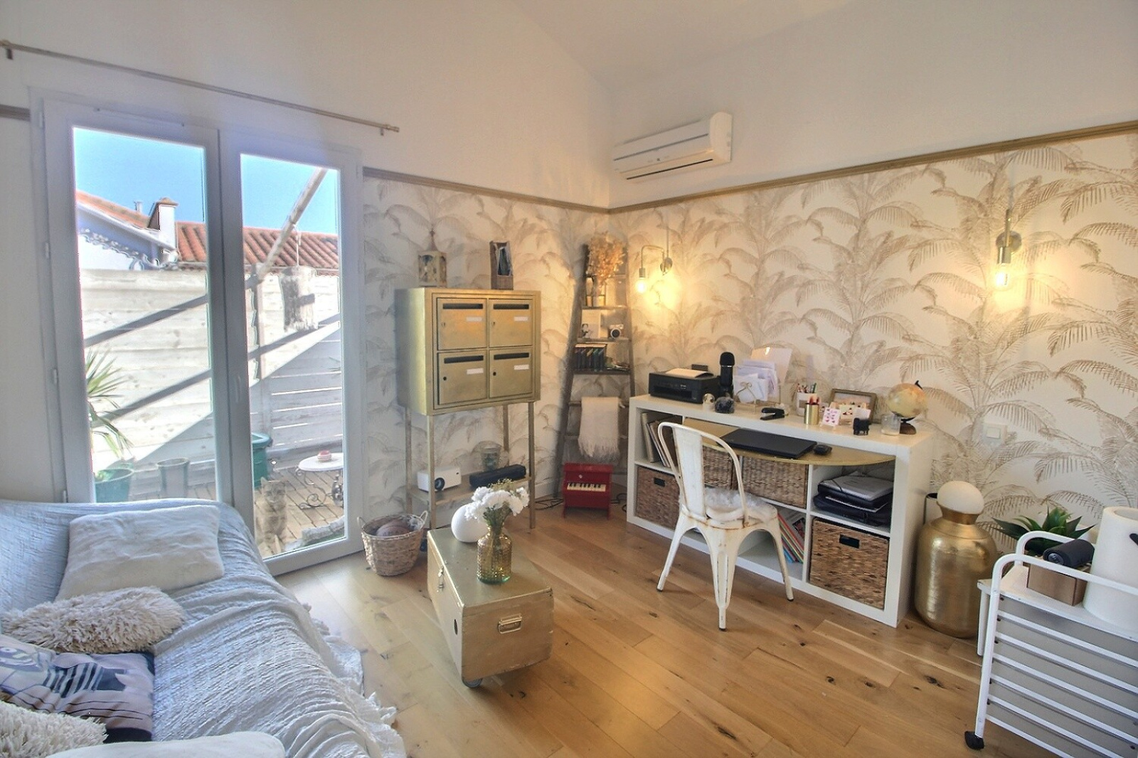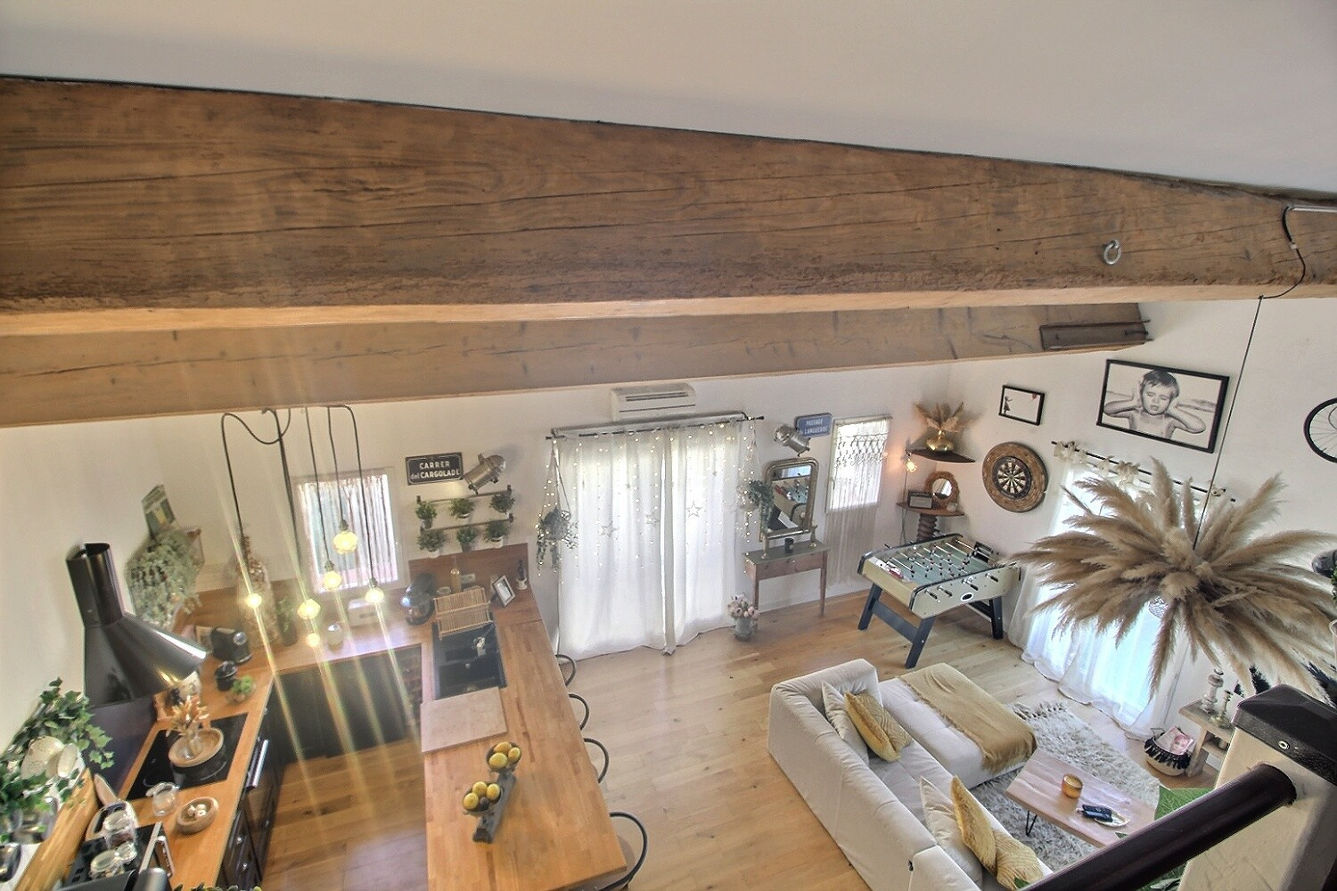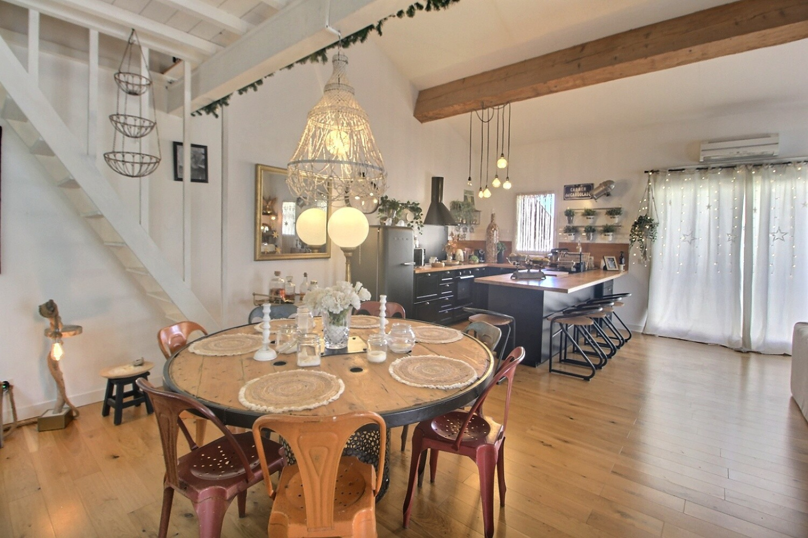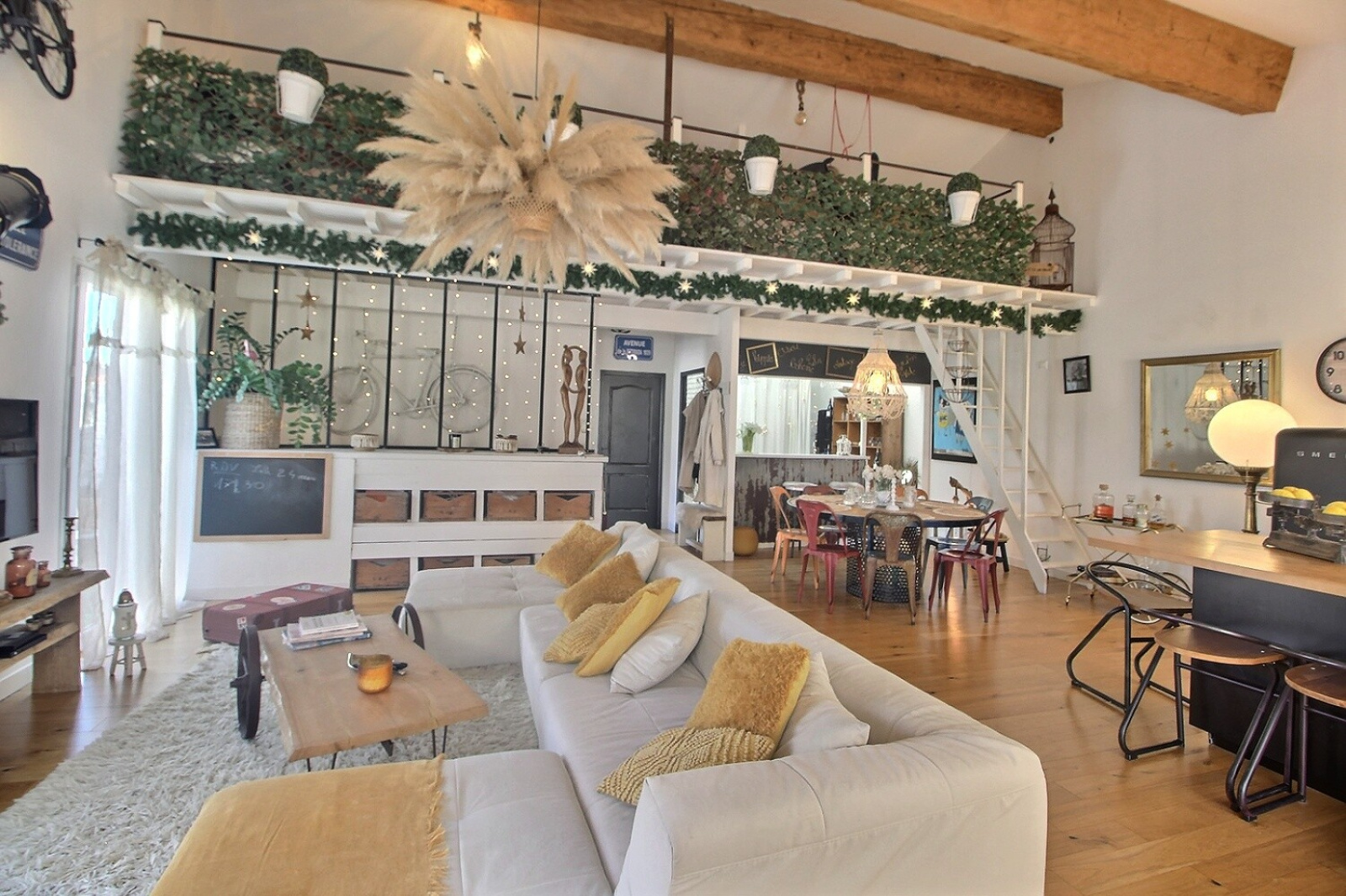 A l'étage, vous serez séduit par ce sublime séjour décoré avec goût, donnant sur une cuisine us équipée avec terrasse de 40 m² sans vis-à-vis, une 4ème chambre, un bureau et une grande mezzanine.